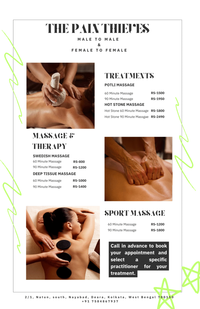 Deep tissue therapy done by the pain theives.the experience was excellent. I m looking forward to your next session.